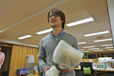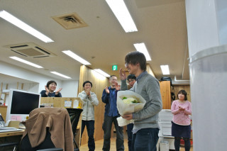 やまはたくん最終日 さて、今日はアルバイトのやまはたくんとお別れの日です。 1年間、「ほぼ日」のアルバイトをほんとうにありがとう。 お客さまに、お茶とまちがえて 「めんつゆ」を出してしまったあの日。 あの日から、やまはたくんのあだ名は 「めんつゆ」になりました。 アルバイトの中でいまいちばん手が空いてるのは誰? と訊いたら、光のような速さで 「ぼくです!」 と振り返ってくれたやまはたくん。 「ほんとうに、これまで、 ほんとうに、お世話になって いろいろとほんとうに 勉強になりました。 ほんとうにありがとうございました。 これからもほんと、がんばります」 と、最後のあいさつもグダグダだったやまはたくん。 みんなに好かれていたやまはたくん。 さーーーーびしいいいーーーー!! 元気で、また遊びに来てください。 ああ、春がやってくるんだなぁ。 2012/03/02 20:15 |