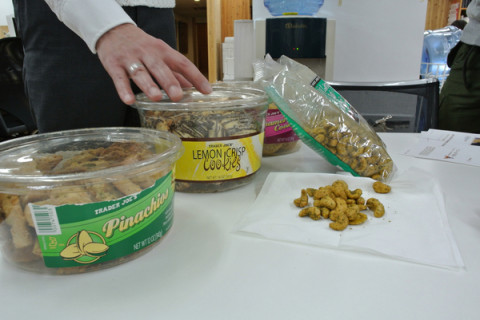 FEEDING TIME そうなんです、テーブルの上にはバードフィーダー‥‥ではなく、おみやげの豆やクッキーが置いてあったのです。 めざとい、鳥、じゃなくて、 嬉々として食べてます。 これは、休暇を取っていた アメリカで買ってきてくれたんですが、本人、急に気になったらしく、パッケージを見て、カロリーを計算しはじめました。 その計算をまどろっこしく思った 「これひと袋食べて 2,000キロカロリーだってよ」 「うそーん」 それはそうと、ゆーなちゃん、凡度、高くない? (みなさん、わかります‥‥?) 2012/03/22 13:16 |