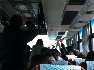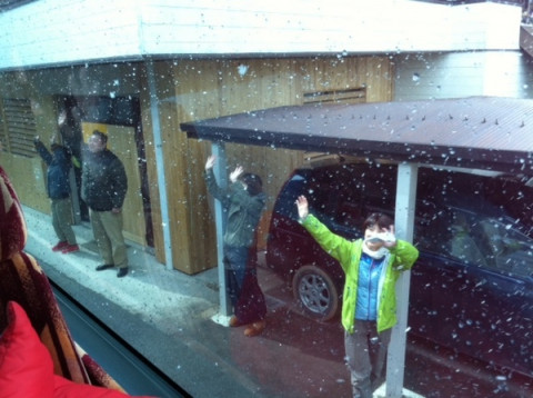 また、来るね〜。 気仙沼のほぼ日に着いた乗組員一同、自由時間を使って、 アンカーコーヒーを飲みに行ったり、お寿司や焼肉を食べに行ったり、さかなの駅でお土産を買ったり、思い思いの時間を過ごしました。 そして、あっという間に、帰る時間に。 一ノ関駅まで、車で移動の気仙沼のほぼ日リーダーの 「ダブルはなえ」とは、いったんお別れ。 昨晩、「さんま寄席」の打ち上げの司会で大活躍の、やっちさんもわざわざ見送りに来てくださいました。 みんながバスに乗り込むと、タイミングをはかったかのように、また雪に。 バスが走り出して、気仙沼のほぼ日の事務所が、だんだん小さくなる中、バスの内と外とで、お互い、姿が見えなくなるまで、いつまでも手をふりました。 「みんな、手をふり負けるなー!」 2012/03/26 15:34 |