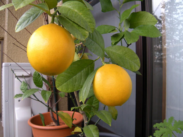 嬉しい〜♪小さい鉢植えなのに立派なレモンを2個も
