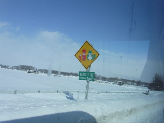赤いキツネと緑のたぬき♪ライトに照らされて目が赤く光るのがキツネで緑に光るのがたぬきだそうな。