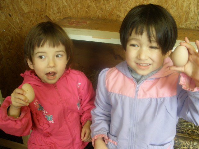 できたてのタマゴチェックは彼女たちの日課です。