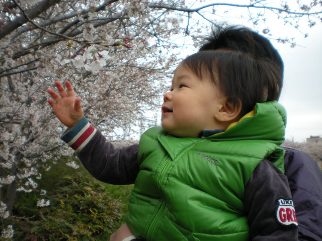 『おはな、きれーねー』『さくら、っていうんだよ』初めてのお花見です。