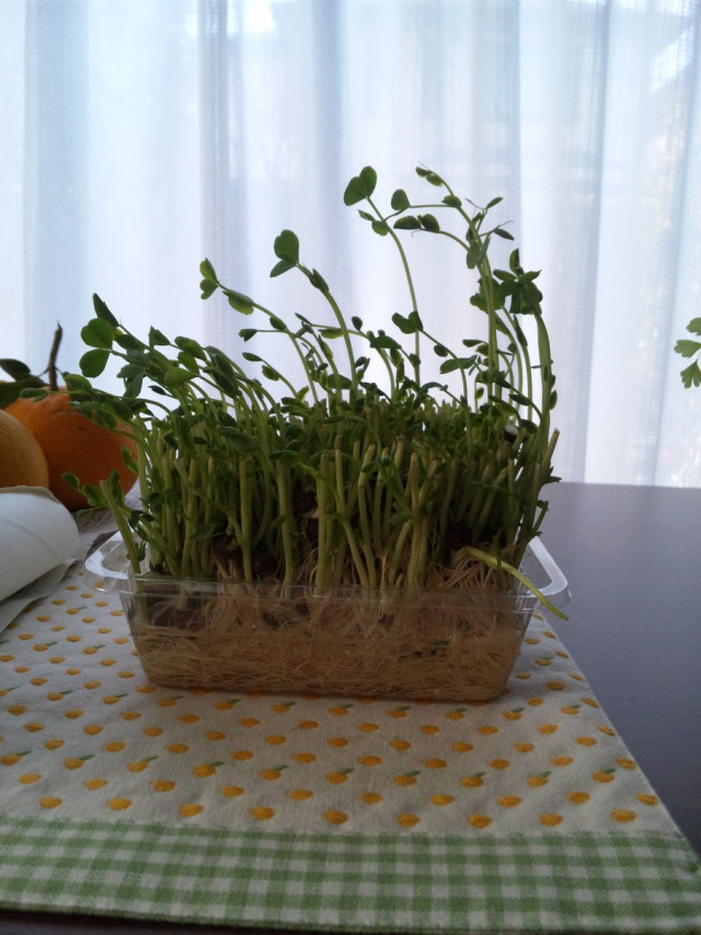 食べてしまった豆苗の根っこを、パックに入れて水をあげたら‥