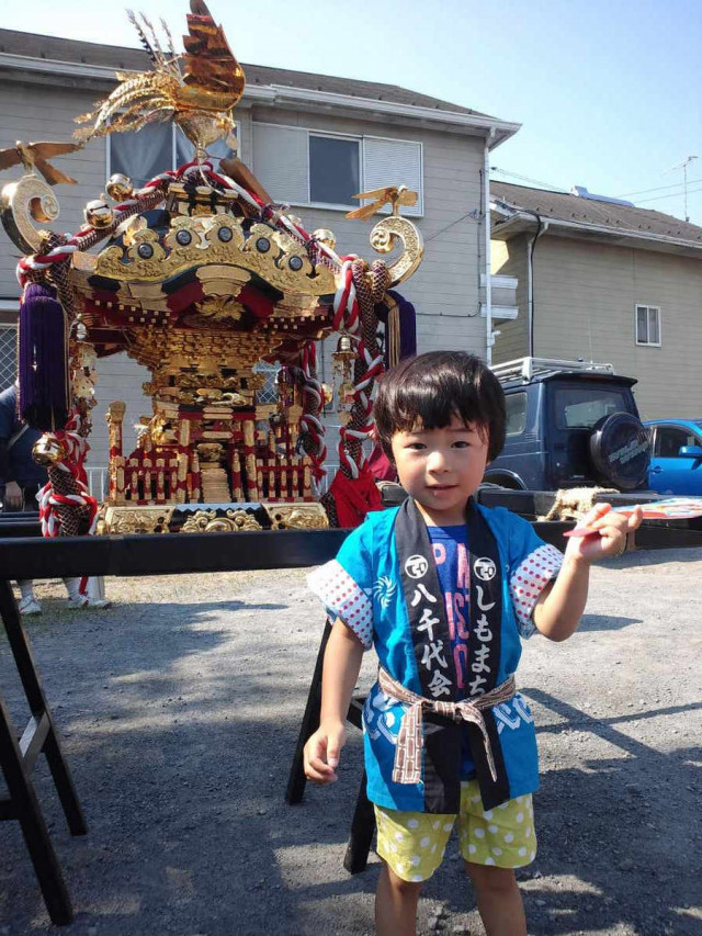 30年前にパパが着たハッピを着て御神輿の出発式に。