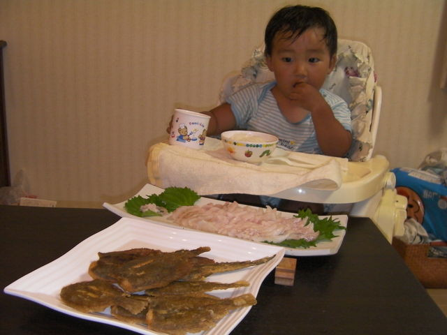 「大漁だったよ〜」ってお父さんが捕まえてきてくれました。