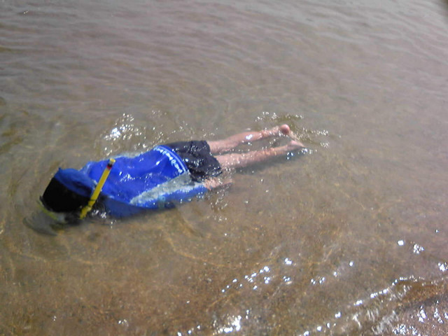 初めての海でシュノーケル練習中