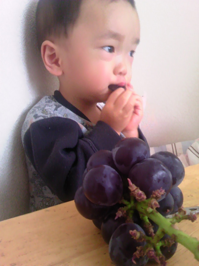 息子がブドウをみた瞬間