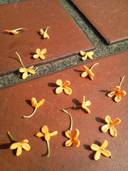 自宅玄関前に散った金木犀の花びら。