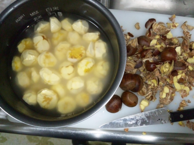 栗ご飯は皮をむくのが大変です。