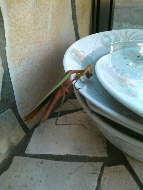 カマキリ君には恵みの器だったようです