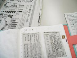届いて、さっそく会社で記事を並べてみました。バッチリでしたよ。その様子を同僚に撮ってもらったので送ります。