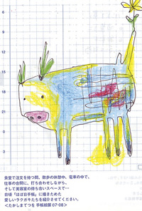 以前、2008年2月25日の「手帳CLUB」(パソコンでご覧いただけます)でご紹介させていただきました、たかしまてつをさんがお使いの「ほぼ日手帳」。中身はイラストがギッシリであることは、賢明な読者のみなさんならおわかりのことだと思います。