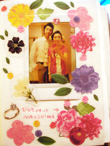 ▲2009年のタイトルのところに、新婚(こちらも2年目)らしく夫とのPiViを貼っています。しっかり、フィルムでラミネートしてあります。