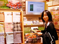 ▲オープン間もない「ほぼ日ストア MARUNOUCHI」にご来店くださったほぼ日手帳ユーザーのやむさん。ブイヨンのハンドタオルやハラマキもご愛用、クリアファイルお買い上げ、ありがとうございました!