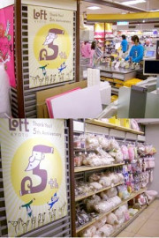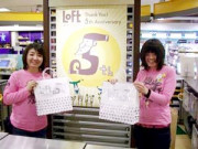「ロフトで働く社員達も5周年缶バッジを付けています。