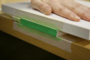 今回は手帳を机のヘリに置いて、上に板をのせてみました。