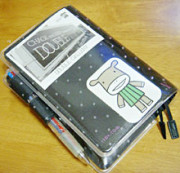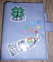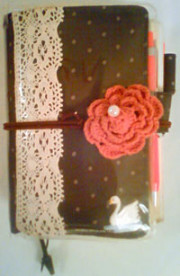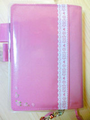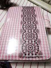 カバーのポケットのところに、レースシールを貼ってます。 これは、100円ショップにあったもので、