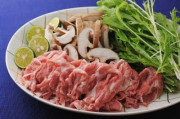 鍋にいれる具は、豚肉としいたけと水菜、と、ごくシンプル。