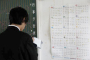 ▲おもむろに席を立ち、黒板の横にあるカレンダーを見ながらメモを取る人も。