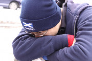 ▲なるべく肌の露出部分を隠して耐えるオトヤ。