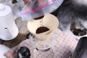 ぐっさんがいつも使っているコーノ式のドリッパーに入れます。
