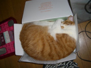 我が家の猫(シマ)が、ほぼ日手帳の箱に