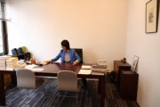 △旧ほぼ日社内をいぶかしげに見学する満島さん。