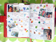 マンガ雑誌の付録の手帳にシールを貼ったり