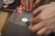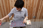 ▲小さい装飾品を貼るときは、いったんボンドを一定量出し、紙の切れ端