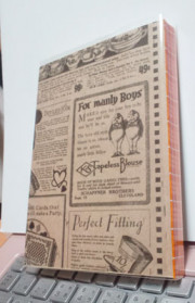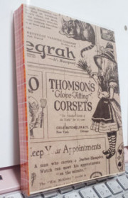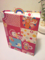 子供向けのレトロな絵柄の端切れ布を厚紙に貼り、