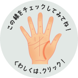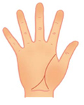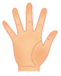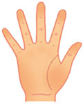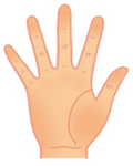 ![]() 2) 手のひらの 中央部分まで 大きくはりだしている。 |
