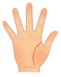![]() 1) 金星丘を取り囲むように 手首の端に巻き込んでいく |