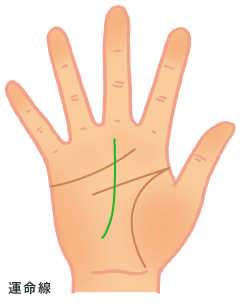 中指に向かってのびていくのが運命線です。