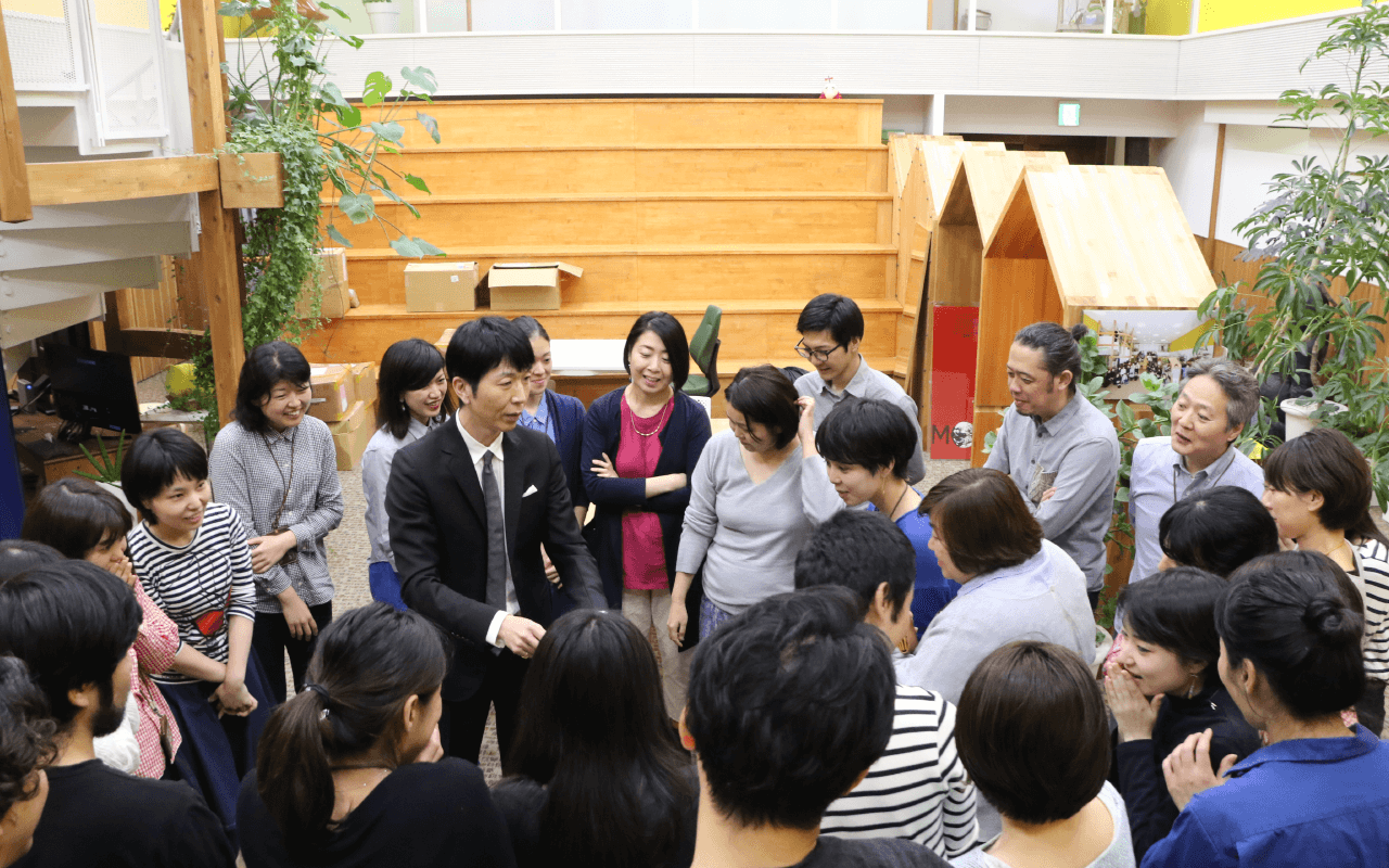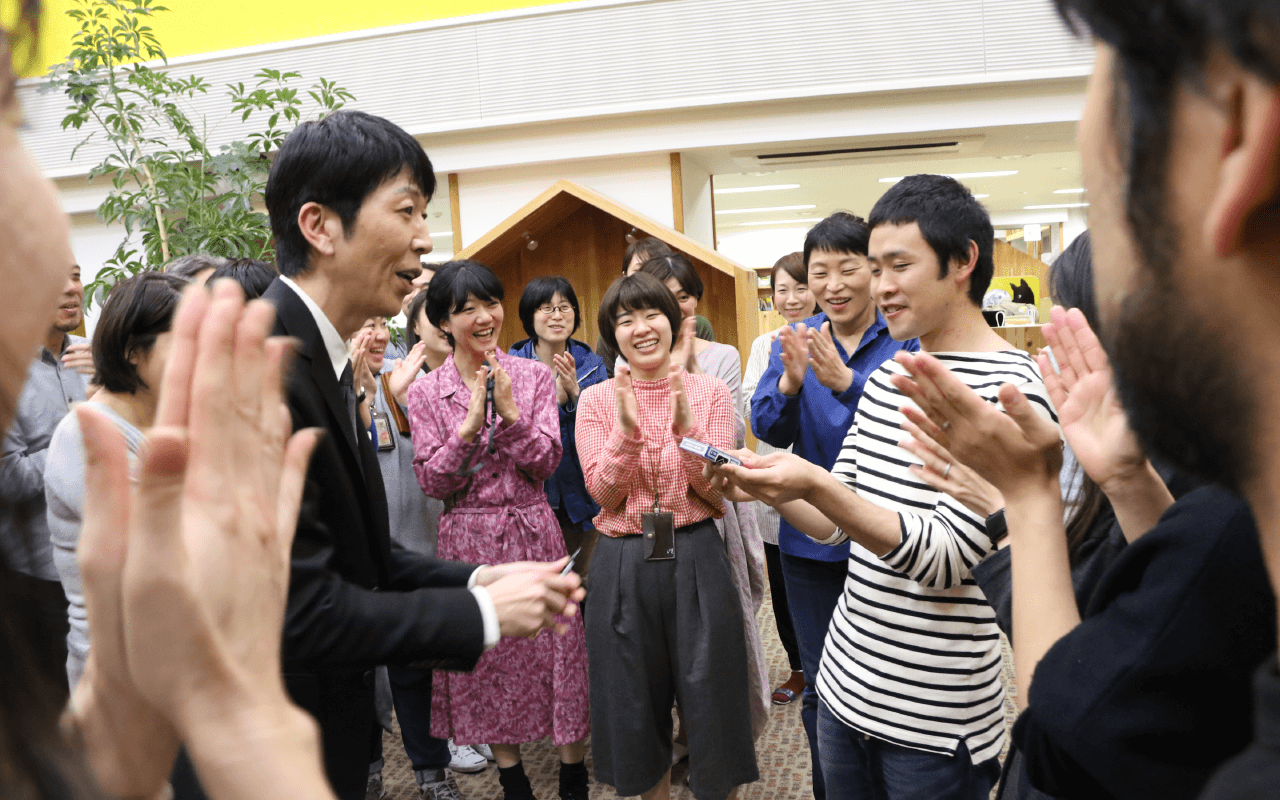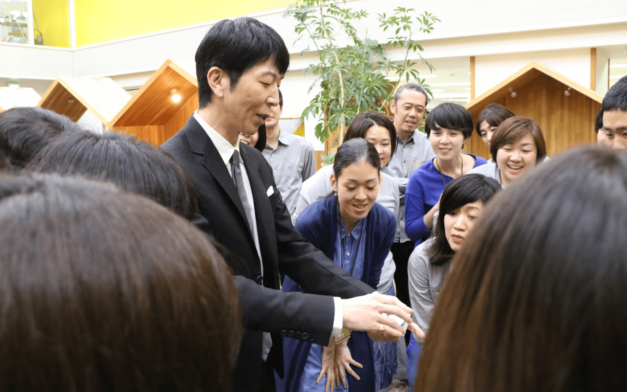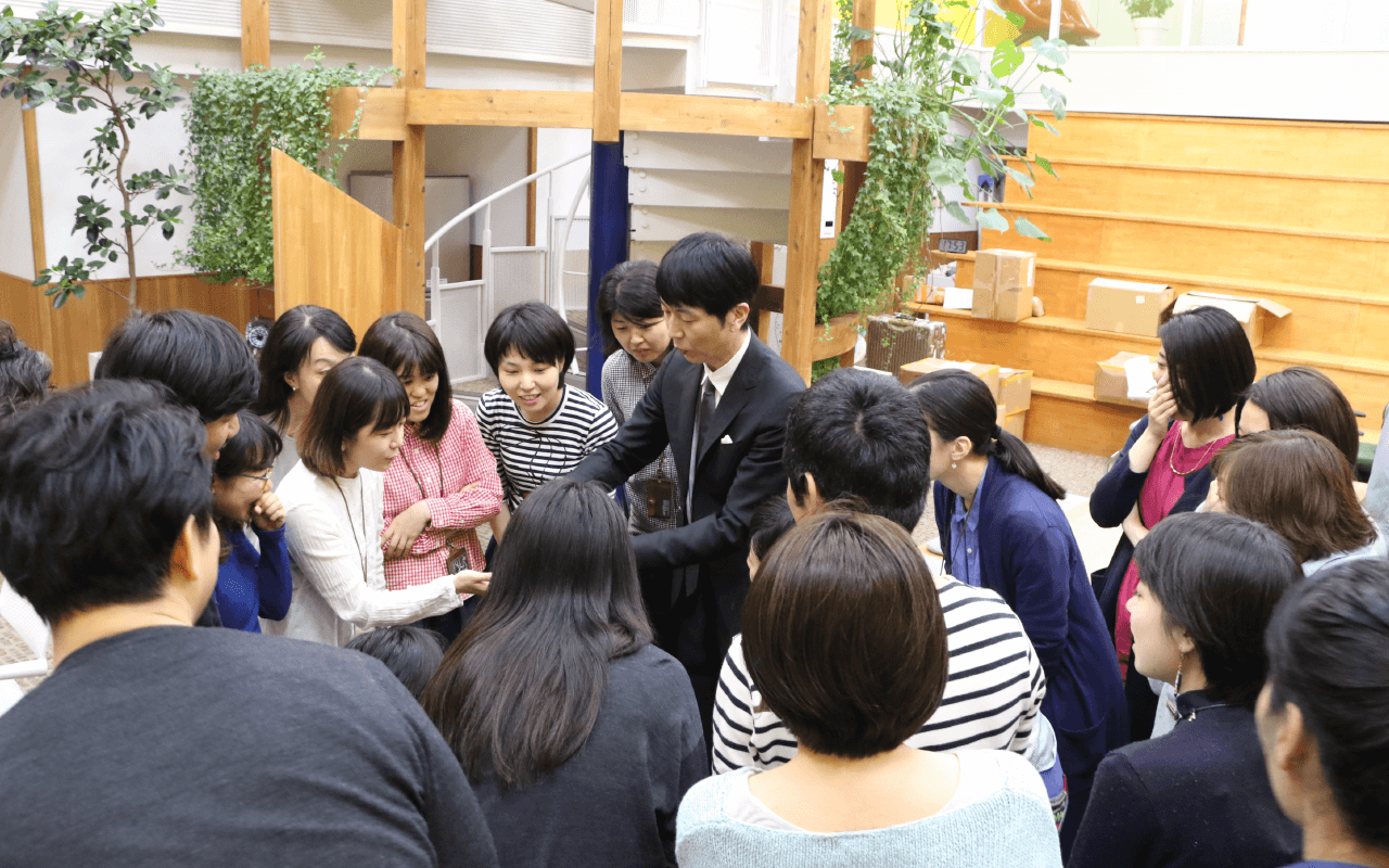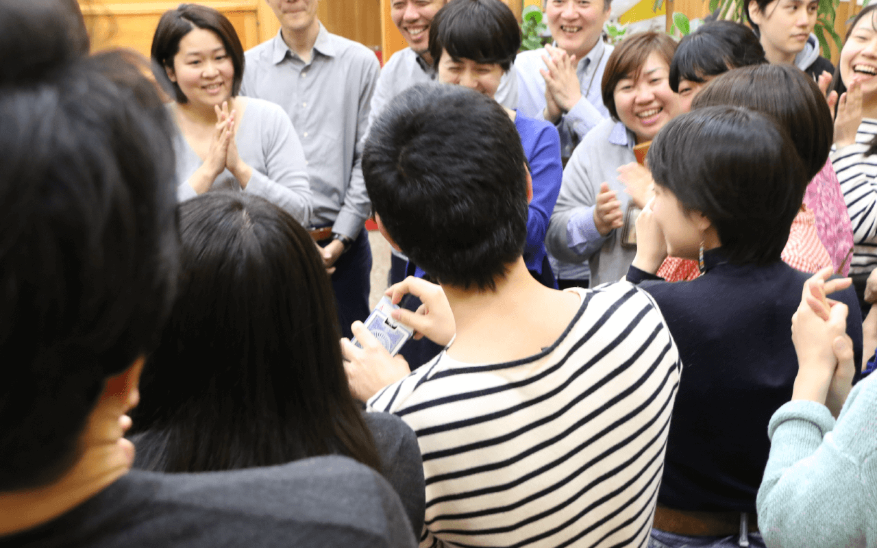 ▲一瞬で、20人以上の乗組員にかこまれる前田さん。