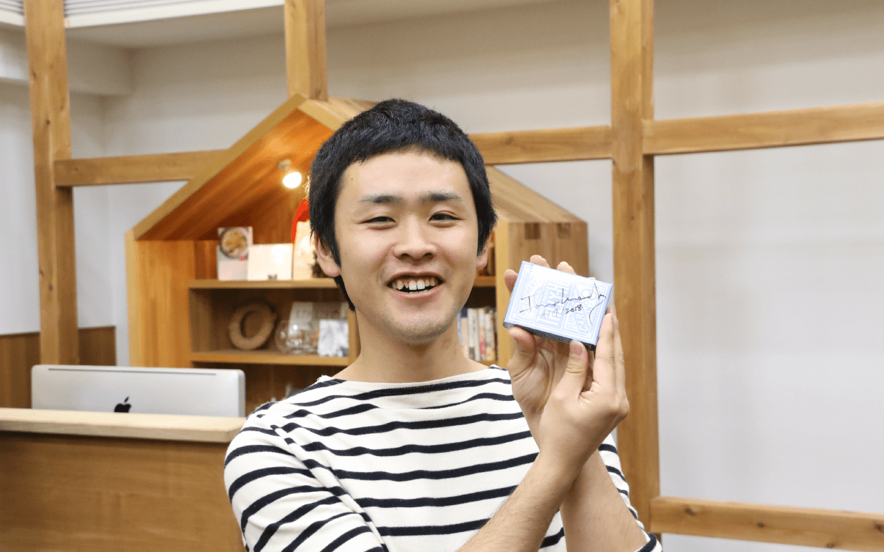 ▲サイン入りトランプをもらってご満悦。よかったね!