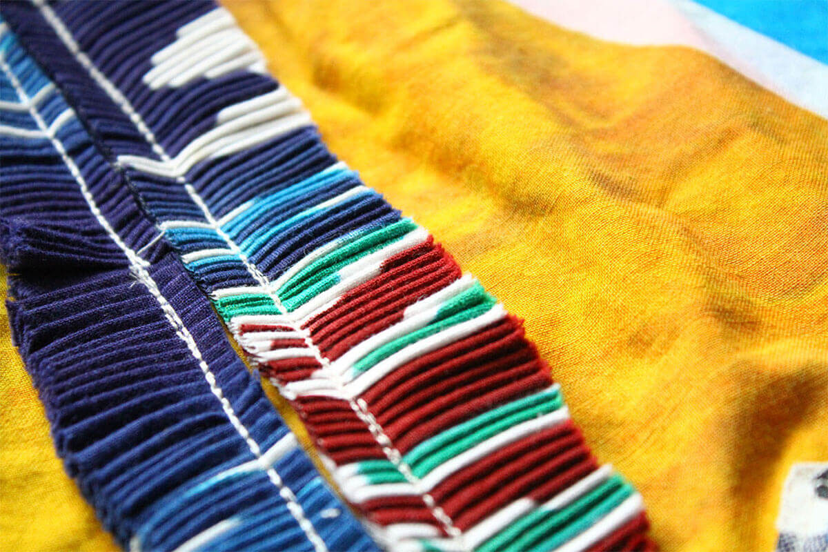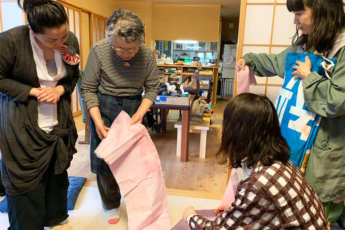 素材は斉吉商店のばっぱから受け取った帯の芯地。