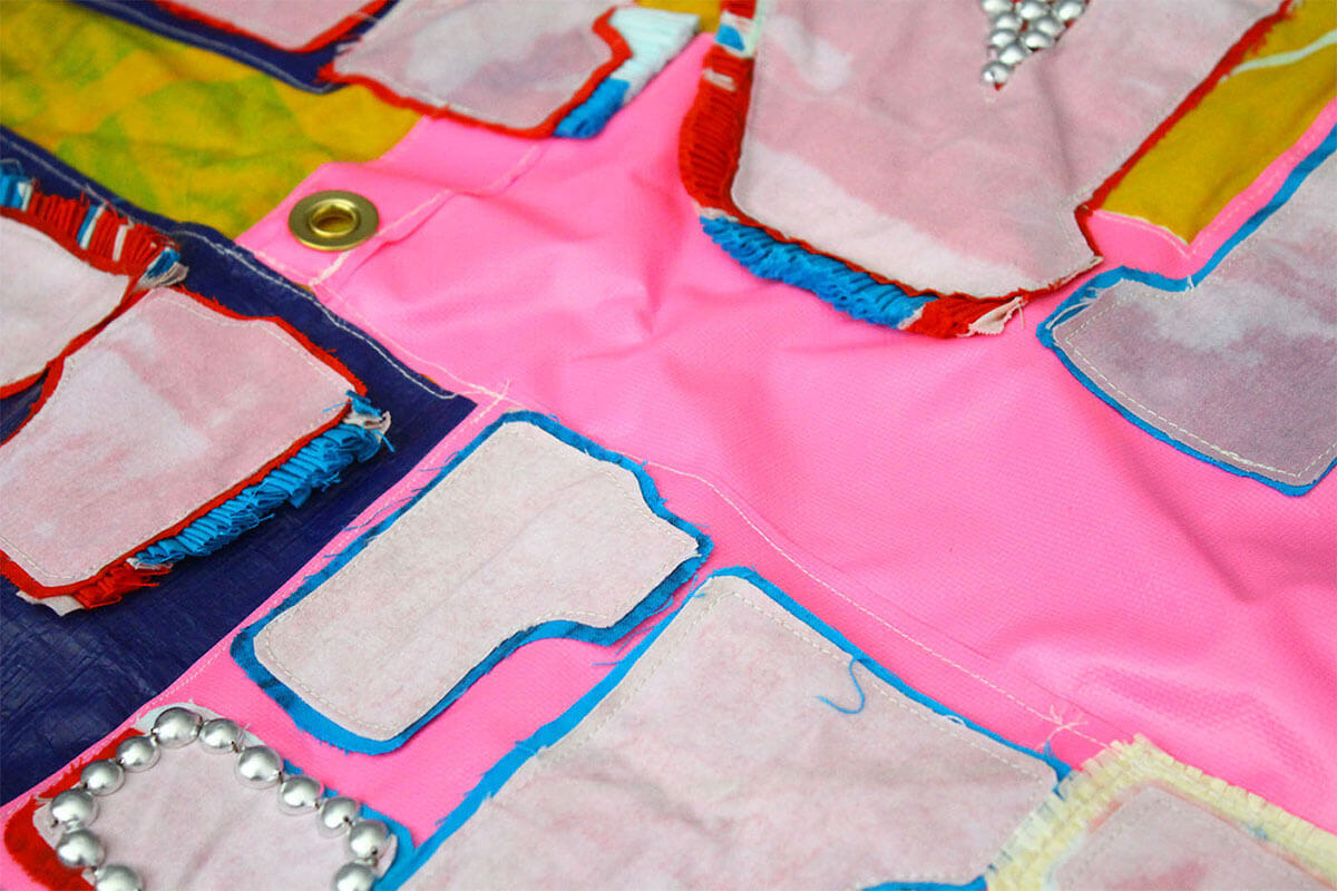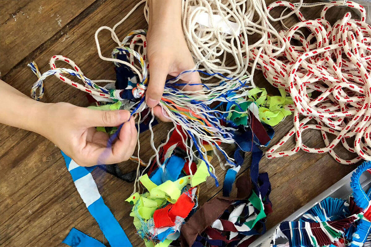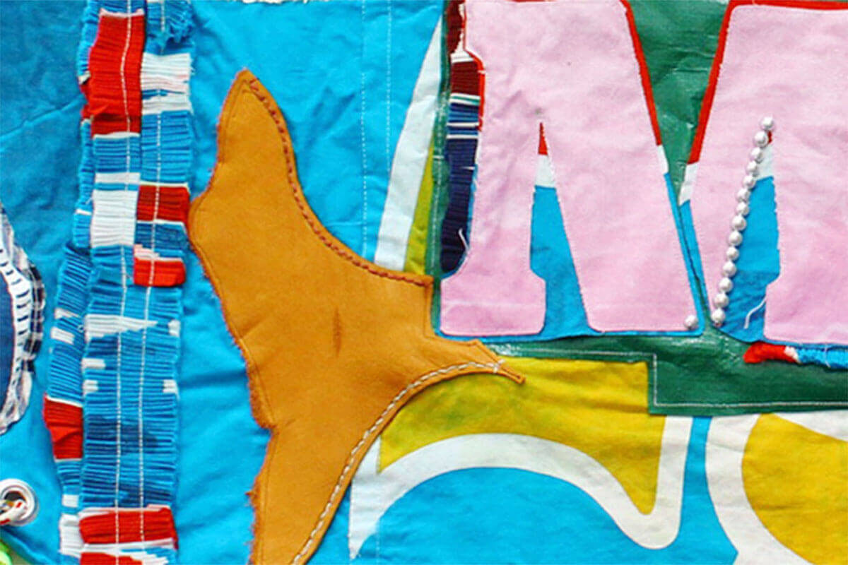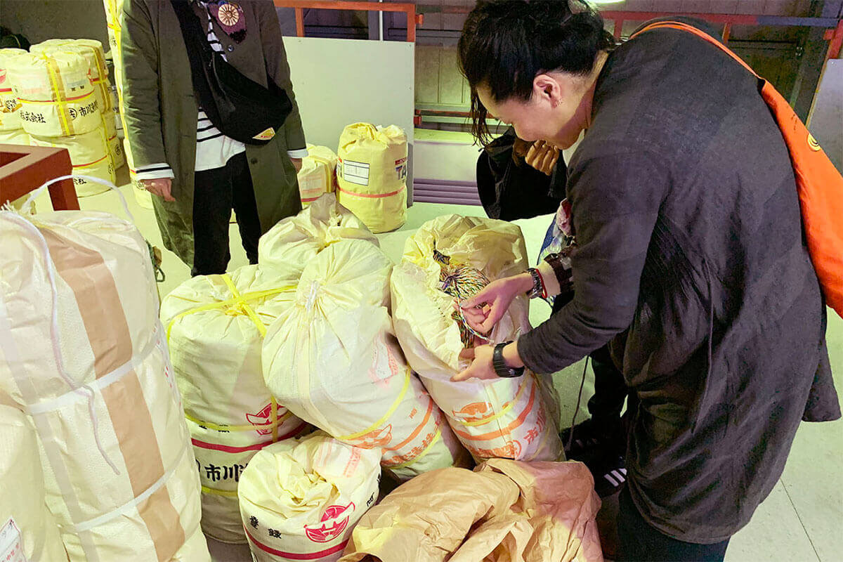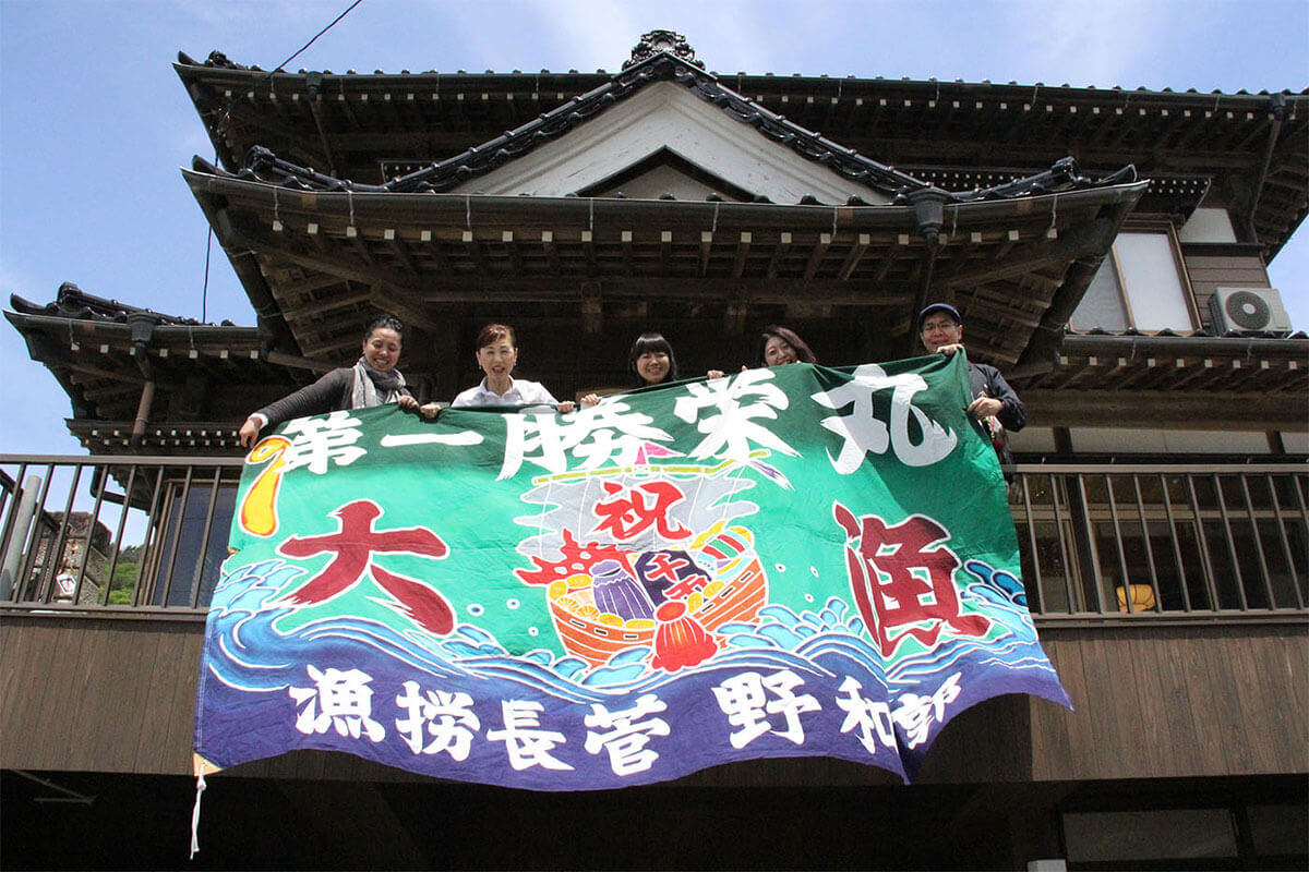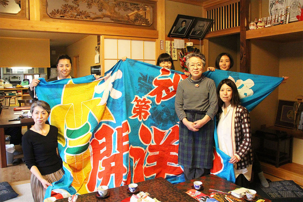 素材はつなかんの一代さんから受け取ったひときわ大きな大漁旗。