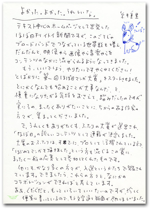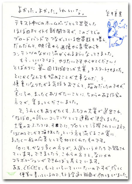 ひとまず「第1回ほぼ日マンガ大賞」を