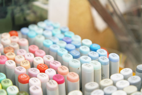 ![]() ▲約140本はあるという、今日さん愛用のマーカー「コピック」。 |