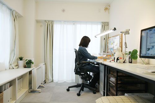 | 今日 | そうですね、いわゆる朝型の生活をしています。 締め切りがあれば、4時、5時に起きるんですけど、 ふだんは7時くらいに起きて、 9時とか10時くらいに仕事を始めて、 夜までやってるっていう感じですね。 忙しいときは、1~2時間仮眠をとって、 起きてすぐ仕事してって‥‥。 いつ寝てるかわからない感じです(笑)。 |