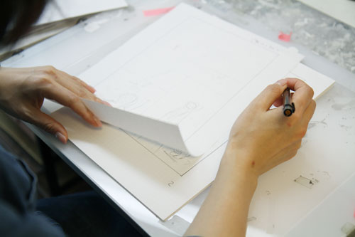 ![]() ▲連載のネームも、たくさん描いている。 |