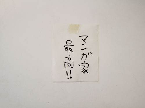 | ほぼ日 | 以前のおうちでは、 机の、スタンドの目立つところに、 「マンガ家最高!!」っていう メッセージが貼ってありましたが、あれはご自分で? |