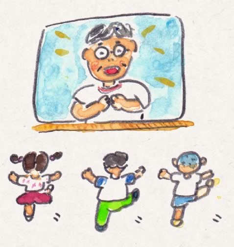 管理人室の前で子どもたちがダンスを踊るのだという。