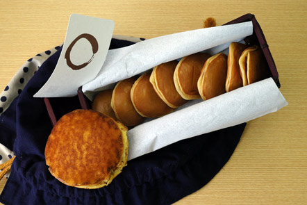 ▲ちいさいどらやきは「鈴懸」の「鈴乃○(えん)餅」。