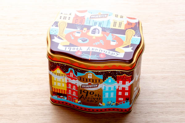 バンホーテンのココアも可愛らしい記念缶が出てますよね。