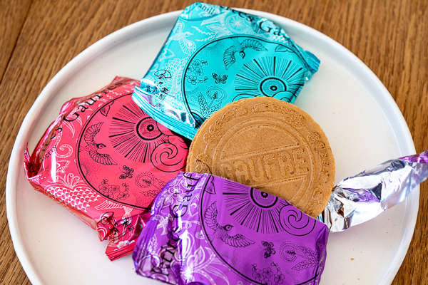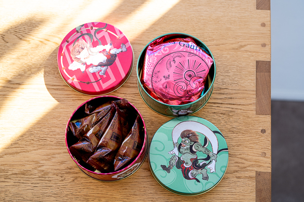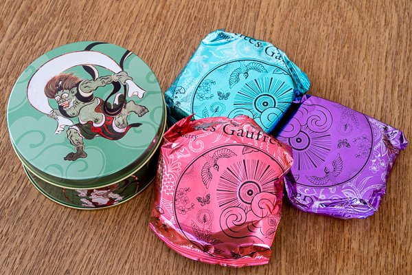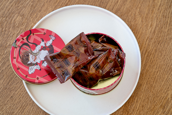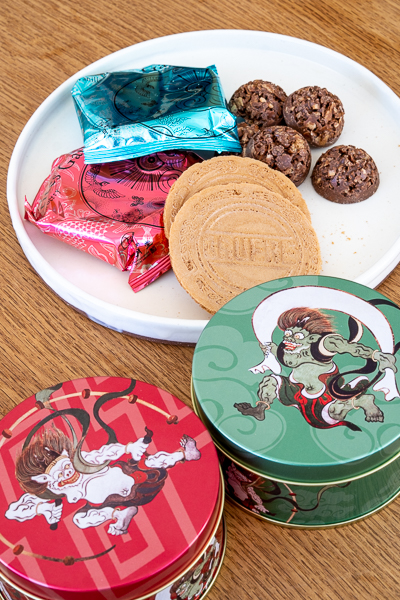 | あけまして おめでとうございます。 年が変わると、 つい昨日だった去年を遠く感じるもの。 でも、不測つづきの昨年にかぎっては、 そう簡単に遠くなってくれないような感覚の年初です。 おだやかな年明けを 迎えられていることを願いつつ。。。 それでも時間は、 どの年も平等な速さで刻まれていくので、 気を取り直して、 2021年のはじめ、まずは風神雷神図を。 ![]() ご存じ、 尾形光琳の「風神雷神図」です。 いや、風神雷神缶のゴーフルです。 ![]() 側面の絵では、 右の緑の缶が、雷神さま。 左の赤い缶が、風神さま。 風を司る風神は、 背中にかついだ風袋から風を吹き出して風雨をもたらし、 雷を司る雷神は、 小さな太鼓を連ねた雷太鼓を背負っていて、 両手にもったバチで叩いて稲妻や雷鳴を起こす と言われています。 真上から見てみると、 緑の缶に、風神さま 赤の缶に、雷神さまの全体像が。 ![]() ![]() 風神雷神図といえば、 江戸時代、俵屋宗達の最高傑作とされる屏風絵(国宝)が まっさきに浮かぶでしょうか。 その100年ほどのちに、 尾形光琳が、その絵を忠実に倣って描いたものが 国立博物館に収蔵されている重要文化財。 この缶のもと絵です。 宗達と光琳、少しの違い、というか、 光琳が意図して変えたのは 風神さま、雷神さまの目線だそうです。 宗達の風神雷神は、 ふたりとも下界を見下ろしているのに対して、 光琳の神さまたちは、 お互いを見るように視線が交差しているとか。 100年経って、より仲よくなったような。 そういえば、 教科書に出てきた写実的な鬼とか餓鬼は ちょっと怖くて、直視できなかった記憶がありますけど、 この風神さま雷神さまは、 よくよく見ると、憎めないお顔立ちという気も。 なんとなく、見慣れたのかな。 ![]() 開けてみると、 いつものプティゴーフルと、チョコクランチが! 風神さまがゴーフルで、 雷神さまがチョコクランチですね。 ![]() ![]() ゴーフルは最高です。 わたしが生まれる前年に他界した 祖父の大好物だったらしく、 祖母の家に行くと、いつもゴーフルが置いてありました。 むろん、ゴーフル好きに育つわけです。孫のわたしも。 前回のクリスマスには 祖母が甘いもの好きだったと書きましたけれど、 祖父も負けないくらい 甘いものに目がなかったということは、 どうやったって、わたしは甘いもの好きに生まれる 宿命だったのですね。 年初から、ほぼどうでもいいわたくしごとですけれど。 ![]() なにを言いたいかというと、 甘いものばかり、嬉しそうに綴りつづけるこの部屋は、 今年も、きっと変わらない、 いや、変われないと思うのです。 きびしい事態、つらい状況がつづくと、 なにを見ても気が滅入ることは、 わたしもよくあります。しょっちゅうといっていいほど。 だから、こんな能天気なことばかり書いてていいのかな。。。 読んでくださる方を 嫌な気分にさせてしまうのじゃないかな。。。と はばかられる思いもあります。 ![]() でも。。。 やっぱり、ずっと食べているのですよね、 日々、甘いものを。 落ち込んだときも、不安でしかたないときも、 さんざん凹んだあと、気づくと冷蔵庫から チョコをつまんでる自分がいたり。 そのうちに、ま、いいか、と 気を取りなおして歩きだすといった生態です。 立ち直ったから食べるのか、 食べたから立ち直るのかは、不明ですけど、 甘いものが、なにかの糸口になってるのは わたしの場合、真実です。 だから、 甘いものをつまむと だれしも、ちょこっと元気になれる、なんて もちろん、一概には言えないのですけど、 おいしいものの話をしないでいるのも もったいないし、たのしくですよね、きっと。 食べることと眠ることは、生きることの基本。 こんなモットーのこの部屋と 無理なく、おつきあいいただけましたら、 こころから嬉しく思っています。 ![]() ![]() そういや、なにがあっても ここでは懲りずに、ずっと菓子の話をしてるなぁーと なかば、あきれつつ、 今年も、この部屋をよろしくお願いいたします。 ![]() 風神雷神が、 今年は今年の良い風を巻き起こしてくれますよう。 なにより、 みなさまにとって、良い年となりますよう! わたなべ まり