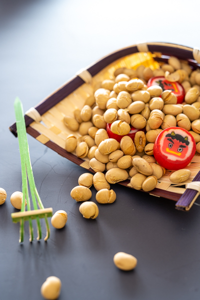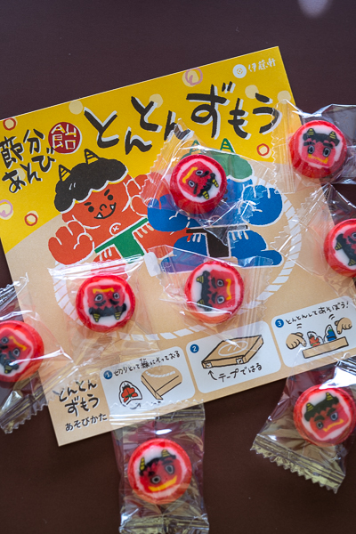 | 今年の節分は、 今日、2月2日だそうです。 ![]() 2月4日が立春、 その前日の2月3日が節分、と思い込んで この部屋も明日に向けて準備してたら、 今年は一日、早いとか! こころなし、 飴の鬼もびっくりしてるような表情に みえて、、、きませんか? ![]() どうして、いつもは2月3日と思ってた節分が 一日前倒しの今日かというと、 暦と、実際の地球の回り方のずれからだそうです。 ものすごく、おおざっくりした言い方をすると。 ![]() わたくし、理科はまったく得意じゃないのですけど、 国立天文台の暦計算室というページをみると とてもわかりやすく記されていて、 なるほど〜と、わかったような ちょっと得した気分になります。 ![]() 地球が太陽のまわりを一周するのが、 時間でいうと、一年。 季節は、 太陽のまわりをゆっくり回るときの 地球の陽の当たり方には違いがでてくるから 日本では春、夏、秋、冬とうつろっていくわけですよね。 その一周を、人は便宜上、 一年=365日(うるう年は366日)と 決めて暮らしてますけど、 地球が太陽のまわりをぴったり365日でまわってる わけじゃないから、 (そりゃ、そうですよねぇ。。。いわれてみれば) 時間の端数がでてきてしまう。 そのずれを吸収するために、うるう年があったり、 節分の日が動いたりする。。。 これで、合ってるかな? ちなみに、一日早い2月2日の節分は、 明治30年(1897)以来、124年ぶりだそうです。 ![]() 鬼のふりしたピングーに つたない説明を手伝ってもらいましたけど、 正確な情報としては 国立天文台暦計算室をのぞいてみていただければ。 「暦計算室」って名前、素敵ですよね。 図などを見てると、 ただただ過ぎていくように感じてしまう時間も、 地球のゆっくりした動きそのものなんだなぁと なんだか視座を変えられるような気分になります。 そのゆっくり回り続ける船にのってる 小さい、小さい自分なんだなぁ、と思うと その自分が、小さいことでくよくよしたりするのが ごまめの歯ぎしりみたいで、おもしろく思えてきたり。 ![]() 小さいといえば、 この豆セット、ちっちゃな熊手もついてるんです。 かわいくないですか? 豆をまく前に、 無駄にこの熊手で豆掃き? してみたくなるような。 ほかにも、 思わずシンプルに遊びたくなる豆菓子も。 ![]() さっきの豆セットに入ってるのと 同じ飴かな? でも、こっちには とんとん相撲がついてます。 ![]() なつかしぃーー こういうの、つくったりしましたよね? 昭和の子どもはしてましたけど、 平成や令和の子どもたちもしてるのかな? ![]() 紙の力士の作り方とか折り方とか、 とんとんの力の入れ具合とか、 勝つコツがあるんでしょうねぇ、きっと。 シンプルだけど、けっこう奥深そうです。 あと、こけしせんべいの 鬼バージョンもあります。 ![]() 単純に、おいしくて なかなかやめられなくなります。 あたまのところの豆菓子と からだの部分のおせんべいとでいったら、 この、豆菓子がとくに好きなのですよねぇ。 ![]() 甘さとしょっぱさの絶妙なバランス。。。 豆菓子、ばんざい。 しかも、この赤鬼と青鬼、 けっこう、にくめない顔してて、 しっかり、かな棒も持ってます。 ![]() ![]() 鬼はそと、福はうちと勢いよくまきながら、 節分の願かけとしては 疫病退散ですよね、今年も。 病気快癒や悲願達成には 「一日でも早く」といいますけれど、 そういう意味で 一日早い今年の節分は、 きっと回復のときを早めてくれると信じつつ。 ![]() まだまだ試練のさなかですけれど、 春にむかって、 少しずつでも穏やかな時間が訪れますよう。 寒さにもまけず、 どうか、よい節分を。 わたなべ まり