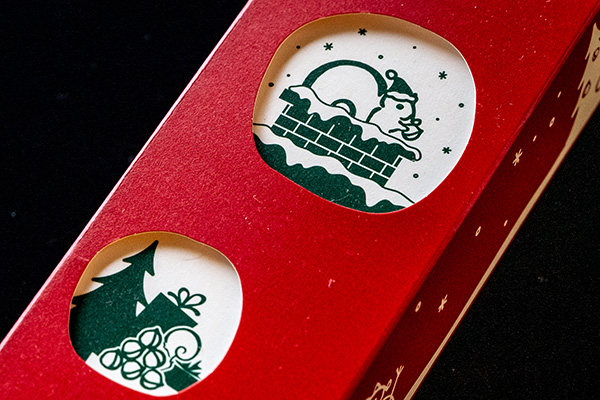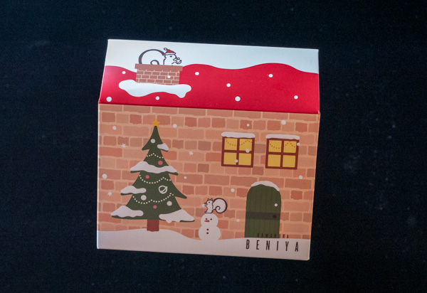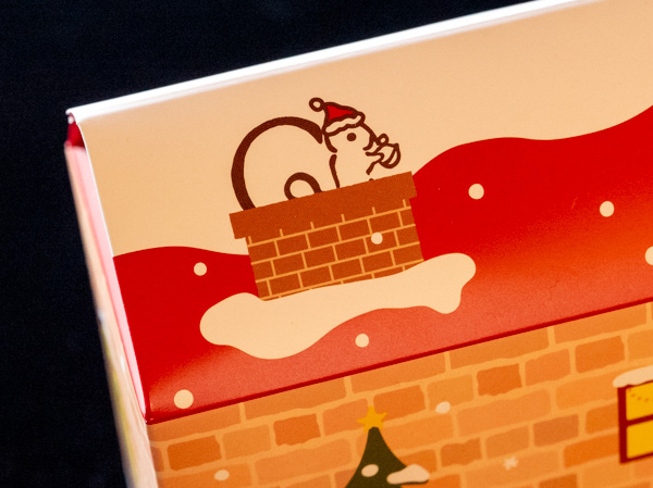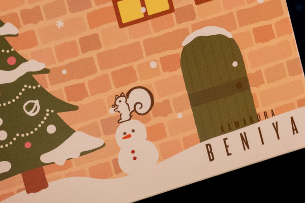 どんぐりを抱えつつ、サンタの帽子をかぶってるリス。