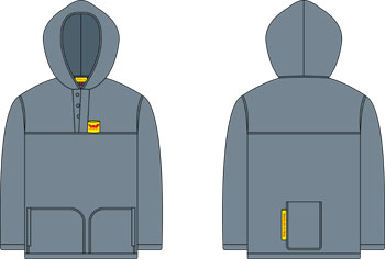 | 「ほぼ日フレンチパーカ」の注文受付開始します。 こんどの「ほぼ日」は、ほんとに仕事が速いでしょ。 昨日、発表したと思ったら、もう、注文受付です。 今回は、注文を受け付けてから作るのではなくて、 作りつつ注文を受け付けるという、 まるで、普通の企業のような度胸のある進行を しているからなのです、 さぁ、どのサイズが、どの色が、何着くらい必要か、 その割合も「ほぼ日デリバリー版」読者のおかげで かなり精度の高い数字で算出できました。 なんてったって、質問から24時間経たないうちに、 最初に出来上がってくる予定の3000を超えた回答が、 届いてしまったのですから、正確でしょう。 でも、まぁ、そのままの数の注文が くるとも限らないでしょう、まさか・・・・。 しかし、どうしよう? すぐに3000着に到達してしまったら。 (4000までなら、生地の染めを手配してあるので、 3週間程度の遅れで、第二回の発送ができると 思うのですが、そのへんの詳しいスケジュール、 まだ、ちょっとカンベンしてください) いままでの経験にない大盛りあがりなので、 まったく先が読めませんけれど、 とにもかくにも、受付けをはじめなきゃはじまらない。 受付開始の時刻は、お昼休みの終わり頃。 10月18日(水曜日)の午後12時50分としましょう。 で、受付け締め切りは、見当がつかないので、 未だ決められません。 3000着の注文が揃うまで受け付けるのは確かです。 さて、早く申し込みたい方々、落ちついてくださいな。 いろいろ知っておいていただきたいことがあるのです。 例えば、返品は一週間以内にね、とか、 海外の方々の送金方法とか、いろいろと、 いわば契約のようなことを了承していただかないと、 あとでお互いに困ることになりますので。 まず、昨日、この「ほぼ日フレンチパーカ」の デザイン画をご覧になった方、申し訳ないです。 昨日の図は、ボタンの付いている部分の合わせが、 女性ものとなっていましたが、 実際には、今日ある図のようになります。 でも、デザインの流れを考慮して、 タグの向きはそのままです。 【デザイン画】